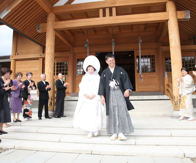 人生で一番輝く瞬間、いつまでも忘れない 永遠の愛を誓う幸せの瞬間。そんな瞬間を素敵な写真で色褪せない思い出にしませんか。 土崎神明社挙式プラン スタジオフォトプラン 土崎神明社挙式プラン ★土崎神明社挙式プラン全部込みで¥198,000★ ユネスコ登録で話題の土崎神明社。 フォトプランだけでなく本物挙式付きで¥198,000の仰天プラン! お見逃しなく。 【3社合同企画】 土崎神明社×越中谷写真館×貸衣装 葉月 198,000円通常価格44万円〜 【プランセット内容】 ◎挙式料(初穂料) ◎新郎衣装(紋付袴+衣装小物一式) ◎新婦衣装 (白無垢・色打ち掛け・黒振袖の中から一着+衣装小物一式、かんざし+美容一式) ◎新郎新婦着付け ◎介添え(着付師が兼務) ◎写真撮影(新郎新婦型物撮影) ◎写真プリント(4切2面台紙入り) よくある質問 Q.予約から撮影までの流れを教えてください。 A.簡単に説明すると以下の通りになります。 電話・メールでお問合せ ⇒ 衣装選び/寸法合わせ ⇒ 撮影 ⇒ 挙式 ⇒ お写真選び となります。 Q.衣裳は、いつでも見学できますか? A.大変申し訳ありません。 ブライダル衣裳は、提携の衣裳専門店の衣裳ですので、弊社に常設展示しておりません。土崎神明社で開催する衣装展示会開催時以外は、衣装見学のご予約をいただいてから、弊社又は提携衣裳店へとご案内いたします。 Q.家族の分の衣裳やお仕度もしてもらえますか? A.可能です。お父様のモーニングやお母様の黒留袖、ご兄弟の振袖。またそれぞれの着付け等も全て承っておりますので、お気軽にご相談ください。 Q.土崎神明社挙式プランはなぜこんなに安いのですか?普通40万円くらいしますが。 A.確かな疑問です(笑)このプランは、鎮座400有余年&ユネスコ登録を記念した弊社と土崎神明社のコラボ企画です。利益を度外視した地域貢献プランですので、驚きのプライスになっています。 スタジオフォトプラン ★スタジオフォトならオールシーズン快適★ ジューンブライドは、梅雨の時期。夏は暑いし、冬は雪・・・スタジオブライダルフォトで、オールシーズン快適に! ☆1ドレスプラン 【新郎新婦洋装衣裳各1】 ¥49,800 ☆2ドレスプラン 【新郎新婦洋装衣裳各2】 ¥88,000 ☆1和装プラン 【紋付き袴+白無垢or色打掛】 ¥77,000 ☆白無垢&色打掛プラン 【紋付き袴+白無垢+色打掛】 ¥110,000 ☆1ドレス&1和装プラン 【新郎新婦洋装各1+紋付き袴+白無垢or色打掛】 ¥130,000 ※全てのプランに小物一式+お仕度一式+スタジオ撮影料が含まれております。 よくある質問 Q.予約から撮影までの流れを教えてください。 A.簡単に説明すると以下の通りになります。 電話・メールでお問合せ ⇒ 衣装選び/寸法合わせ ⇒ 撮影 ⇒ お写真選び となります。 Q.衣裳は、いつでも見学できますか? A.大変申し訳ありません。 ブライダル衣裳は、提携の衣裳専門店の衣裳ですので、弊社に常設展示しておりません。土崎神明社で開催する衣装展示会開催時以外は、衣装見学のご予約をいただいてから、弊社又は提携衣裳店へとご案内いたします。 Q.家族の分の衣裳やお仕度もしてもらえますか? A.可能です。お父様のモーニングやお母様の黒留袖、ご兄弟の振袖。またそれぞれの着付け等も全て承っておりますので、お気軽にご相談ください。 Q.家族写真や親族写真も撮影出来ますか? A.当スタジオは、秋田県内でも最大級の撮影スタジオです。20名程度までなら親族写真もスタジオで撮影可能です。 お問い合わせはこちら 当館限定サービス&スペシャルコンテンツ